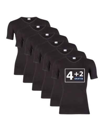 Beeren Heren T-shirt V-hals en K.M. M3000 6Pack Zwart
