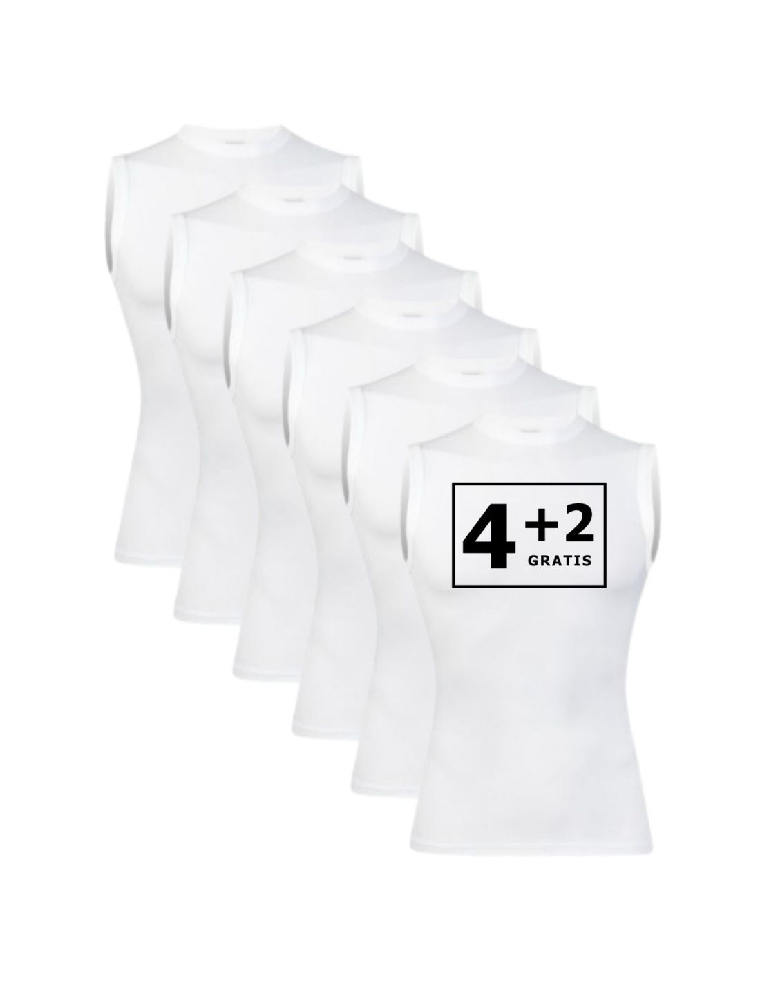 Beeren Heren mouwloos shirt Young (zachte micro stof) 6Pack Wit