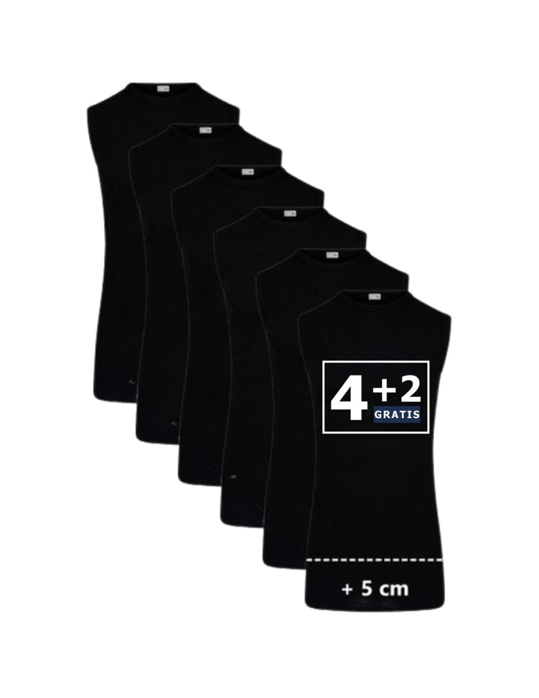 Beeren Extra lang mouwloos shirt M3000 6Pack Zwart