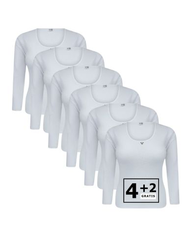 Voor een elegante basislaag die zowel stijl als comfort biedt, kies je de Beeren Dames Onderblouse L.M. M3000 6-pack in wit. Deze klassieke onderblouse met lange mouwen is ideaal voor dagelijks gebruik en perfect om te dragen onder sweaters of blouses voor extra warmte en verfijning.